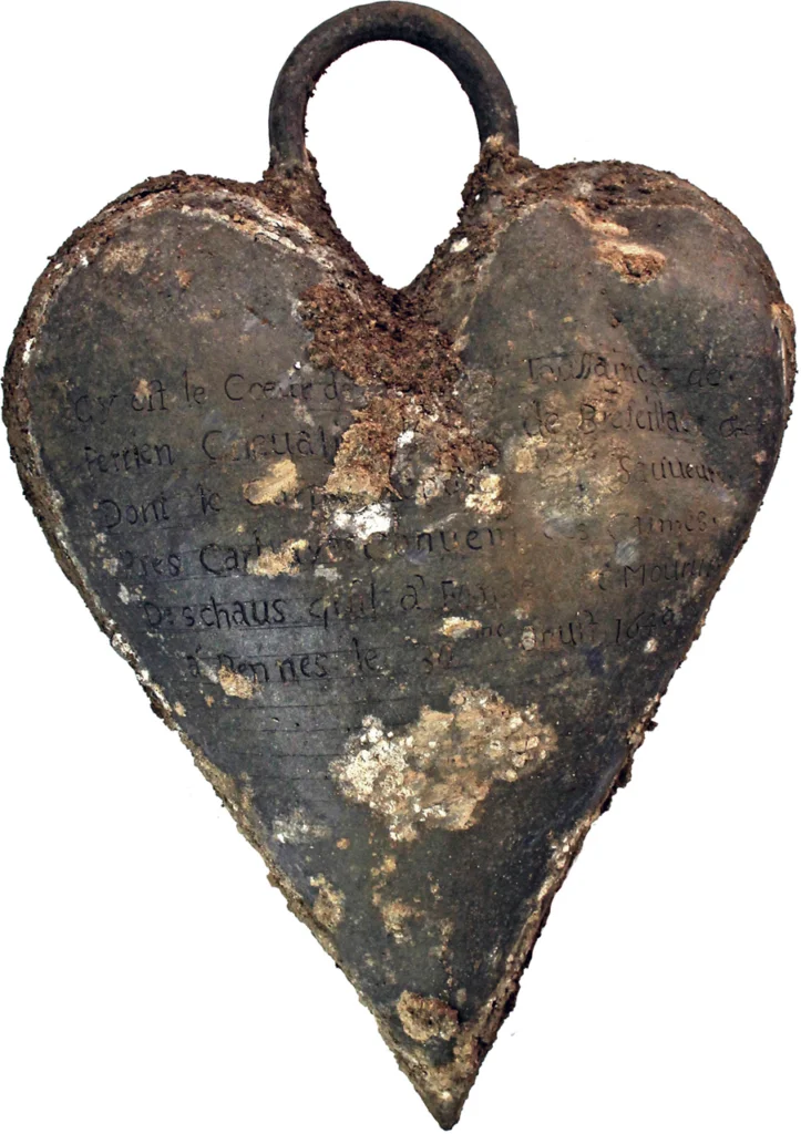 Este gesto, que hoy nos estremece, era conocido en la corte barroca francesa como el partage du cœur (el reparto del corazón). Era una especie de ritual de amor espiritual mediante el cual los cuerpos podían yacer separados en el espacio, pero los corazones, reunidos, sellaban una unión indisoluble más allá de la materia. Las excavaciones de Rennes lo confirmaron, pues se encontraron al menos otros tres corazones en distintas urnas pertenecientes a otros nobles como, por ejemplo, Catherine de Tournemine.